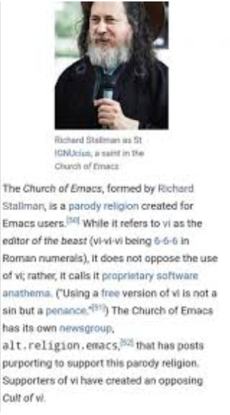 Suppose that "Church of Emacs" (by RMS) was a real thing, though it clearly isn't. What would that even mean? That Stallman's "priesthood" overseas development of "holy" code? Being an Atheist - not even a closeted Atheist - it takes a special kind of dumbness to honestly believe RMS sees himself as a God.