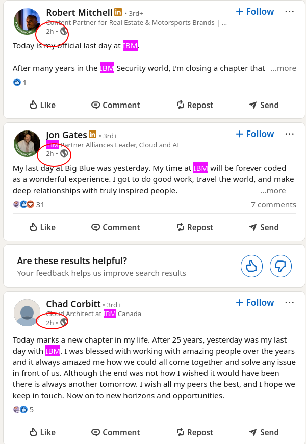 Many IBM Departures Today (Last Friday)