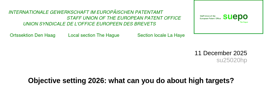 Dear SUEPO members, dear colleagues,Targets for 2026 are currently being handed down to individuals. We have repeatedly requested a bottom-up approach to the target setting exercise and management have assured us that the process would be “fair and transparent”. However, through our regular SUEPO TH member engagement activities we are receiving troubling feedback from the work floor.