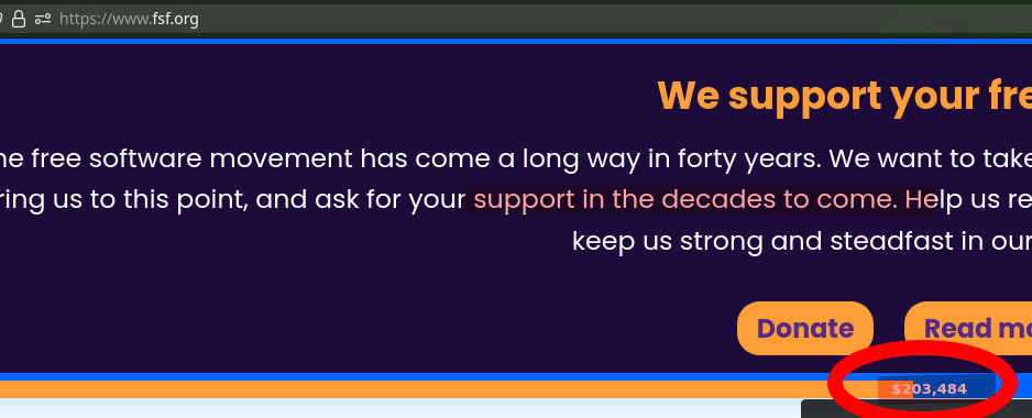 With 19 days left in the year and possibly more time (there are usually extensions of cutoff dates), the FSF is already cruising well past 50% of its target/goal.
