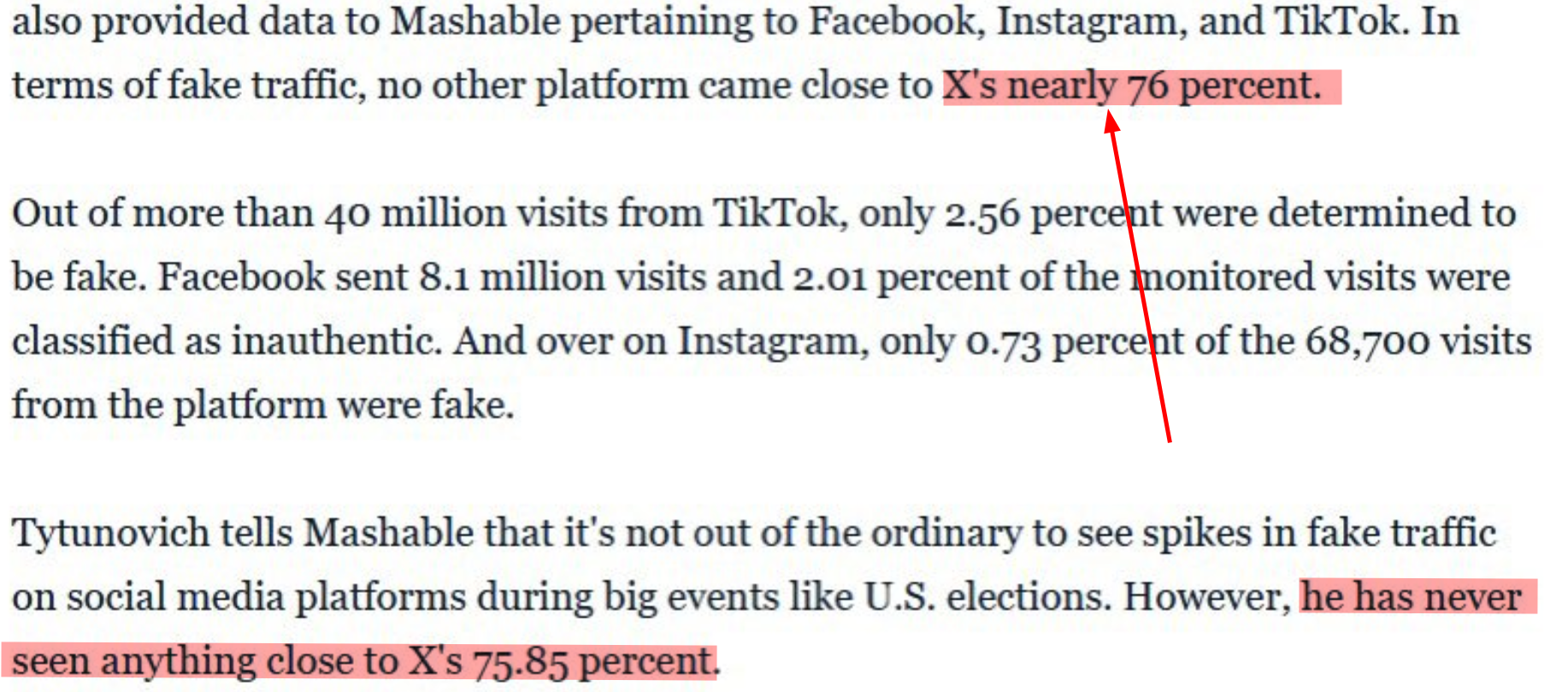 As per FORTUNE, 76% of Twitter is alleged to be bots now: