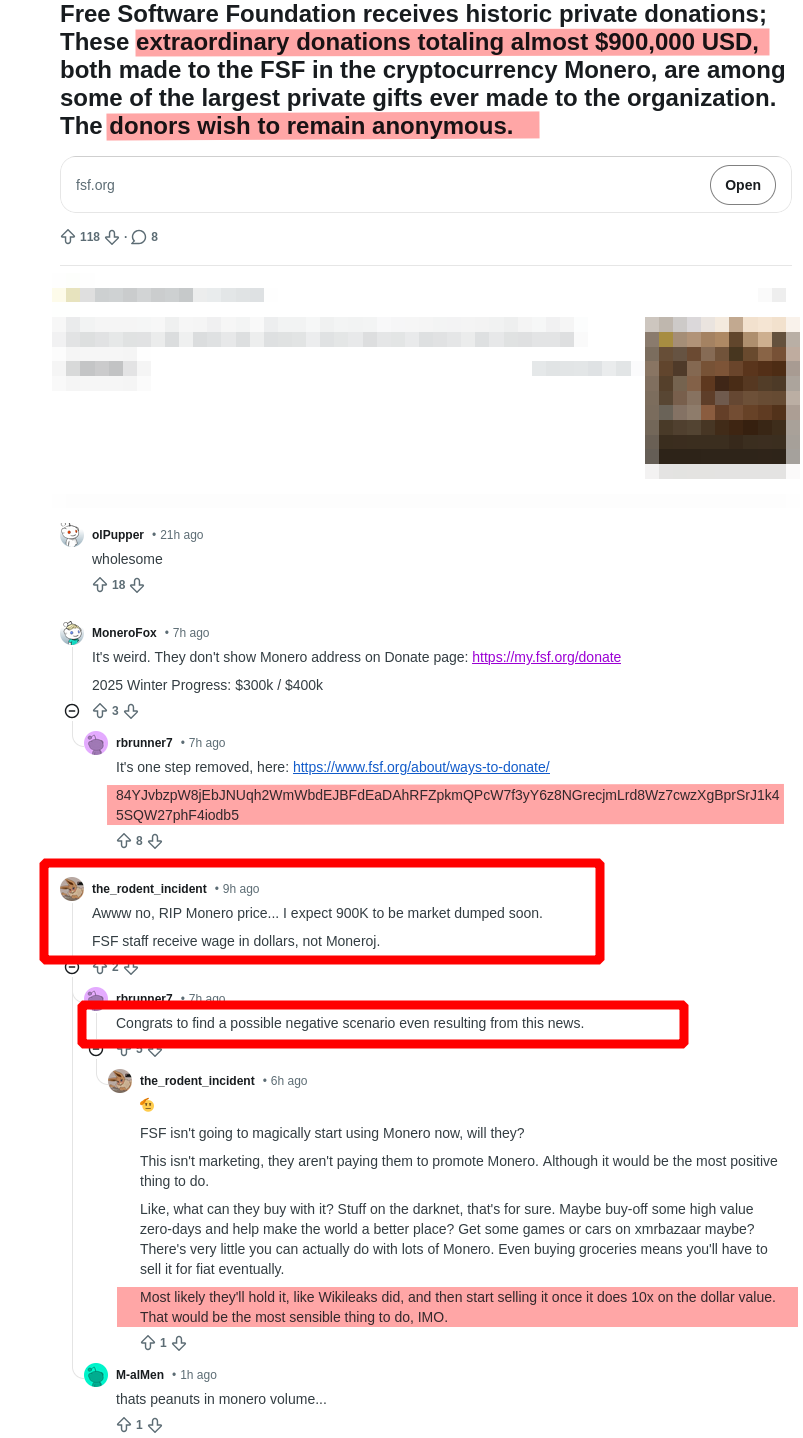 Reddit is, as usual (by design), trying to heckle the FSF, even when there's good news: