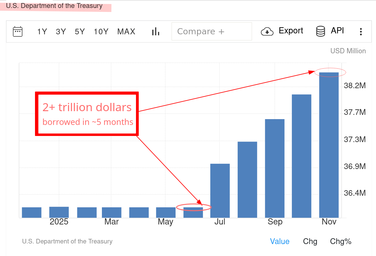 The year is nearly over and a lot of the US "capital gain" under the Cheeto regime isn't anything but plunder, or money taken from the taxpayers in the form of debt (loans, borrowing), right?