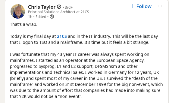 * They still are, but people who know how they work are retiring. This was moments ago, published by someone who had spent 25 years working on IBM stuff: