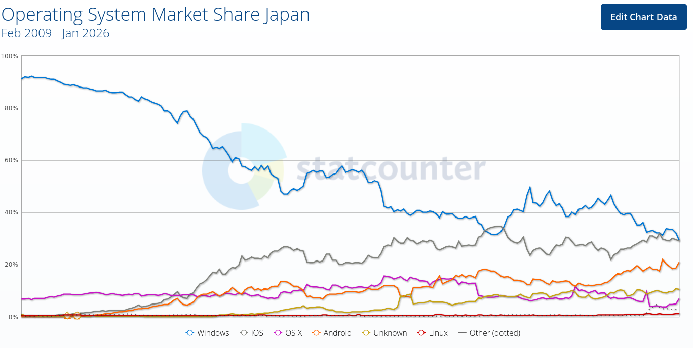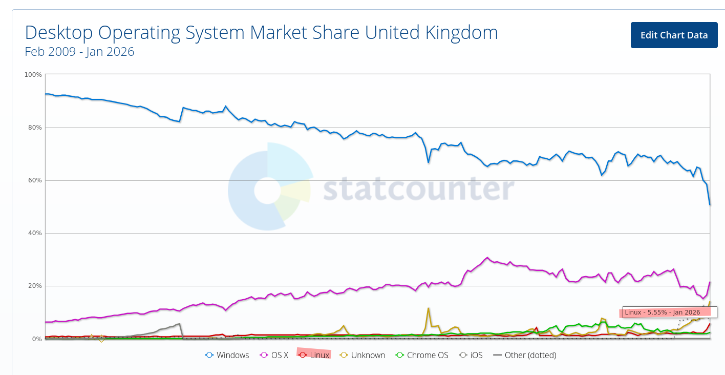 As noted elsewhere, GNU/Linux is seen as rising this year. At least here: