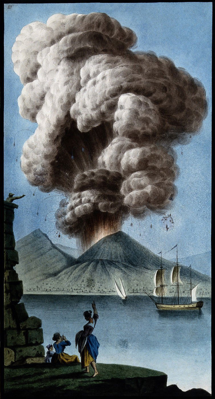 Image source: Mount Vesuvius emitting a column of smoke after its eruption on 8 August 1779