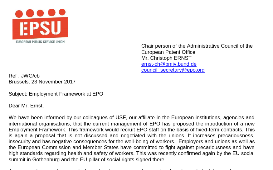 We tried the official EPO address. Well, he was recently seen in public with the "litigation industry" (that works against Europe).