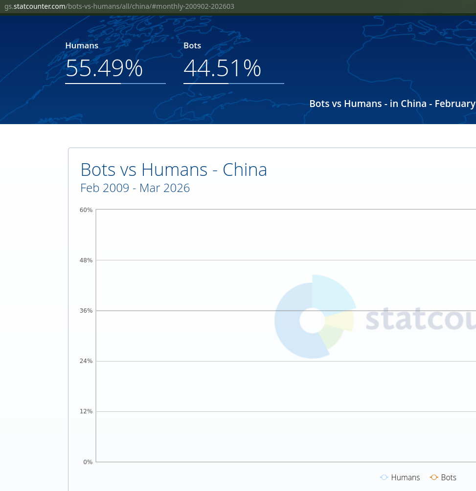 The shape of the Web is so bad that bots (or bots' traffic/requests) exceed humans in some places. █